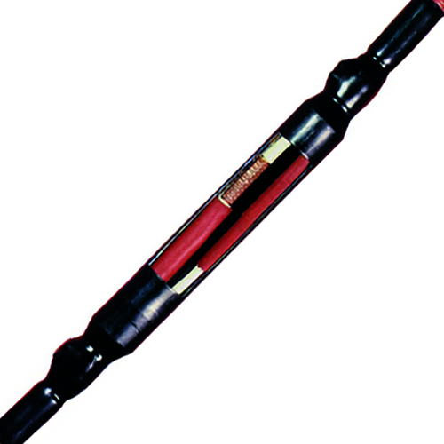 Конструкция переходной муфты на одножильные экранированные кабели с пластмассовой изоляцией На жилы экранированных кабелей наносится желтая мастика заполнения пустот и термоусаживаемые трубки для выравнивания напряженности электрического поля. Жилы соединяются болтовыми соединителями, которые входят в комплект муфт. Область соединения оборачивается мастичной манжетой для выравнивания напряженности электрического поля. Поверх нее усаживается двухслойная эластомерная трубка, обеспечивающая необходимую толщину изоляции и экранирующий слой. Медная сетка оборачивается вокруг места соединения. Непаянная система заземления обеспечивает электрический контакт с броней или медным покрытием. Наружная защита и герметизация обеспечивается термоусаживаемой трубкой с клеем. |