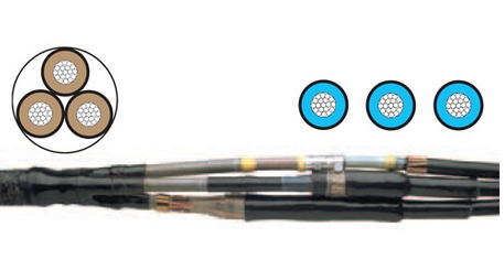 Контакт между металлическими оболочками и броней бумажного кабеля выполняется непаянной системой заземления. Термоусаживаемая перчатка и трубки обеспечивают герметизацию и защиту корешка разделки. Место окончания металлической оболочки подматывают желтой маслостойкой лентой заполнения пустот и выравнивания напряженности электрического поля, а открытые участки бумажной изоляции защищают маслостойкими трубками. Таким образом, кабель с бумажной изоляцией трансформируется в кабель с пластмассовой изоляцией, и далее соединение